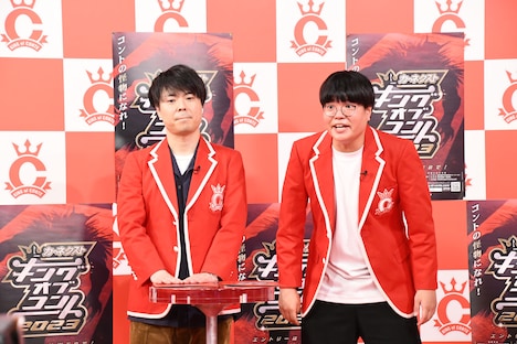 ネルソンズは前回4位。先日放送された「水曜日のダウンタウン」(TBS系)の「和田まんじゅうが抜けたら、青山は岸と2人でコンビとなるのか」というドッキリ企画の反響が大きかったそうで、青山フォール勝ちはそのオンエアについて「まだ5回しか観てない」という。男性ブランコは2021年のファイナリストだが、前回は準々決勝で敗退。これについて平井は「去年僕らはKOCに(準々決勝の)1回しか出てないです。悔しいです」、浦井も「去年は上がりきったハードルでつまずいた。一昨年までのものが何もなくなりました」と揃って悔しさをにじませた。